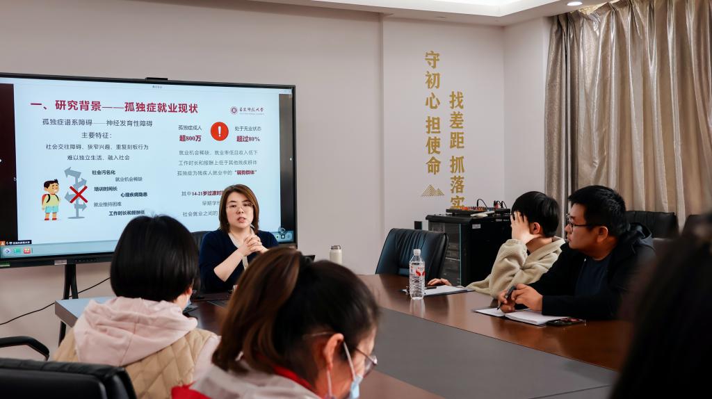 王恒民老师以“孤独症群体庇护性就业”为主题,系统介绍了华东师大“幸福之花”项目在职业评估、技能训练与社会融合方面的实践成果。他强调,职业技能的培养应建立在语言沟通、社交规则、认知执行等核心能力的基础上,并分享了基于AI技术的构音训练系统、社交评估流程、执行功能机器人课程等前沿康复工具与教学方法,为学龄段至职高阶段的衔接教育提供了新思路。