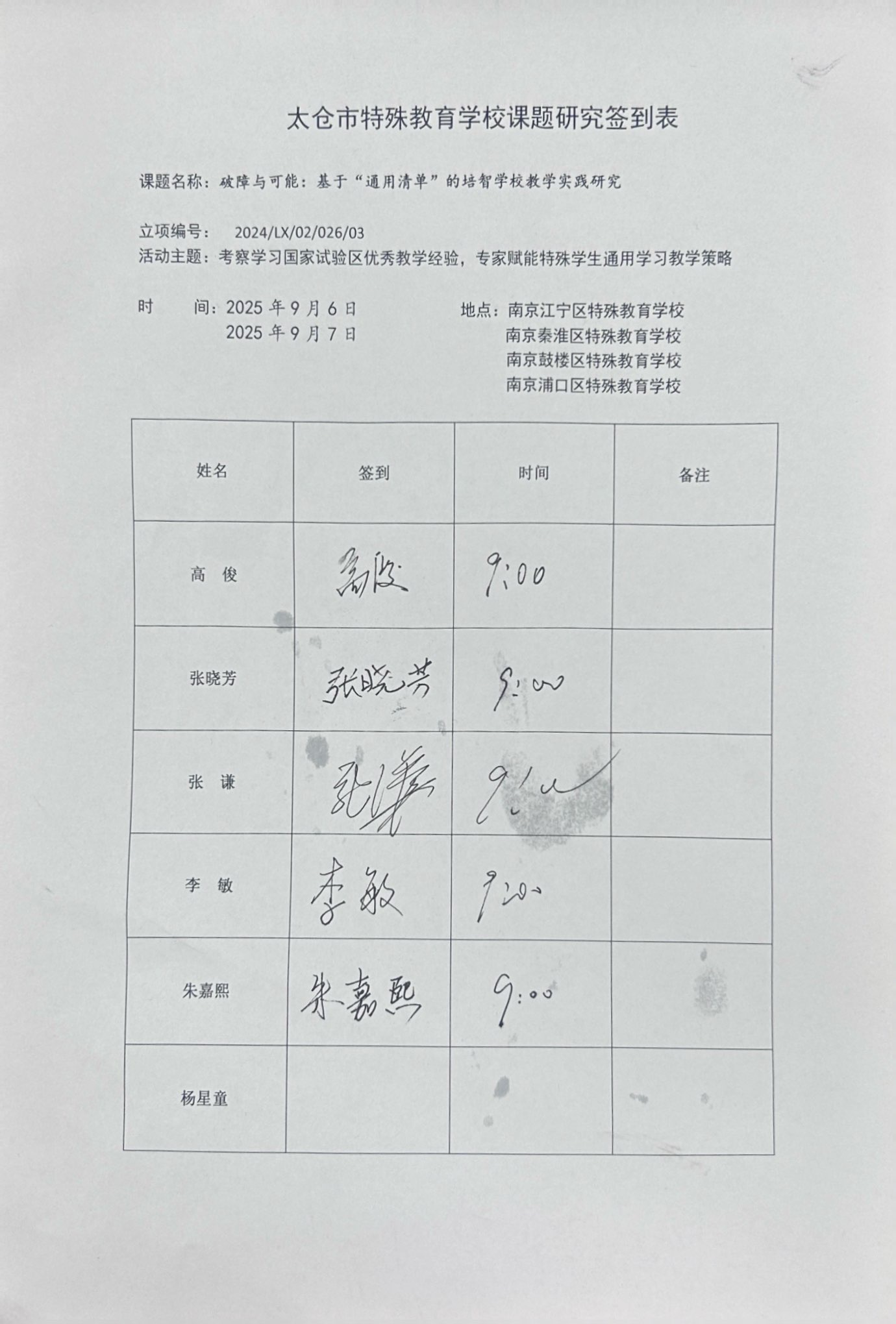 一、实地考察学习过程 (一)江宁特校:融合支持中的“评估清单” 江宁区特教指导中心构建了“评估—指导—跟踪”的闭环服务体系,这正是清单思维在融合教育中的生动体现。他们为每一位随班就读学生制定个性化的教育支持清单,涵盖能力评估、学习目标、支持策略与成效追踪等内容。这种结构化的清单不仅让教育过程有据可依,也让教师、家长在合作中有清晰的行动路径。回到教学实践中,我们也可借鉴此类“评估—干预—反馈”清单,将学生的个体差异转化为可操作的教学步骤。 (二)秦淮特校:生活课程中的“任务清单” 秦淮特校以“生活即课程”为理念,将职业教育融入日常。在烘焙、整理、接待等实训中,学生通过“任务分解清单”逐步掌握技能。例如,制作一份点心可分为“准备材料—称量—搅拌—烘烤—装饰”等步骤,每一步都配有图示与文字说明,帮助学生建立顺序感与成就感。这种清单不仅降低了学习难度,也增强了学生的自主性与自信心。在培智课堂中,我们同样可以设计“生活技能任务清单”,将复杂行为拆解为可执行的小目标。 (三)浦口特校:教学研究中的“反思清单” 浦口特校强调教育科研,教师将教学问题转化为研究课题,形成“教学—反思—研究—提升”的循环。他们使用的“教学反思清单”包括课堂观察记录、学生行为分析、策略调整建议等,帮助教师在系统框架下进行专业成长。这种清单不仅是研究工具,更是教师自我提升的阶梯。我们可以将其引入校本教研,通过“教学行为清单”“学生反应记录表”等,推动教学从经验型向研究型转变。 (四)鼓楼特校:职业教育中的“岗位清单” 鼓楼特校在咖啡调饮、客房服务等职业教育中,设置了清晰的“岗位技能清单”。学生在模拟真实工作场景中,按照清单完成从准备到服务的全过程。这种清单不仅规范了操作流程,也为学生未来就业提供了能力依据。在培智学校的职教课程中,我们也可以开发“职业技能阶梯清单”,分阶段、分层次地培养学生的就业能力与社会适应力。 二、通用清单式教学策略的思考 (一)每个特殊需要学生在教学活动中需求不同。 体现学习的公平性,聚焦特需儿童生涯发展,结合“通用清单”,创设包容的学习环境,开放的学习机会,将课堂教学结构化,“生旦净末丑”让课堂为全体学生服务,满足特需学生在学习过程中多样化参与的学习需求,体会学习的快乐。 (二)不同学科的教学内容间的共性特征,学科融合。 体现学习的有效性,在中年段智障儿童课堂教学中探索“通用学习设计”理论下“主题统整”多学科融合的教学策略。让学生综合运用各学科知识和认知优势能力完成学习任务,满足学生成长的需求,体会运用知识的快乐。 (三)结合孩子生涯发展需求的课程开发于实践。 体现学习的目标性,探索高年段智障儿童课堂教学中“通用学习设计”理论下“项目化”创造性的教学策略。聚焦特需学生学什么的问题,结合“通用清单”中特需学生学习需求,将教学生活化,让特需学生习得有用的知识和技能。“项目化”创造性的教学策略面向学生的生涯发展,促进学生沟通、交往能力的发展,为学生融入主流社会做准备,关注学生的生命发展。